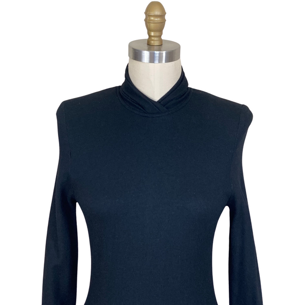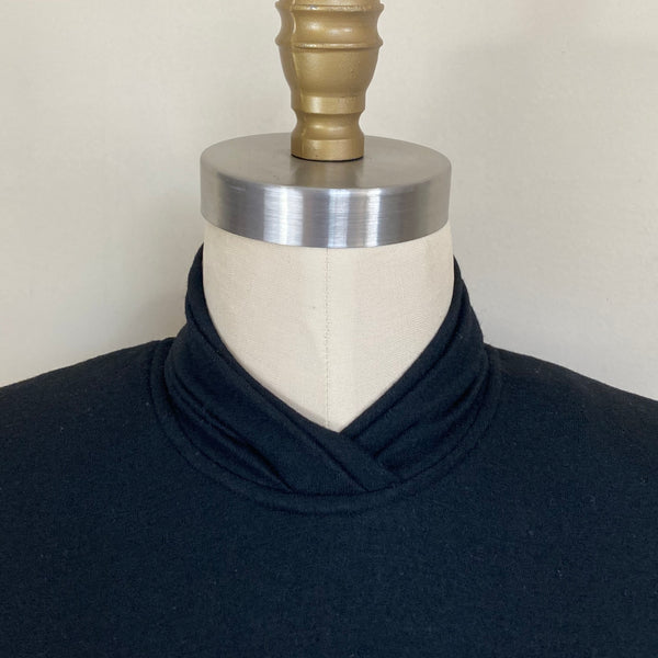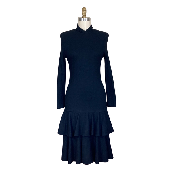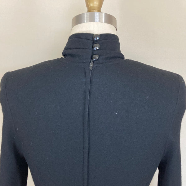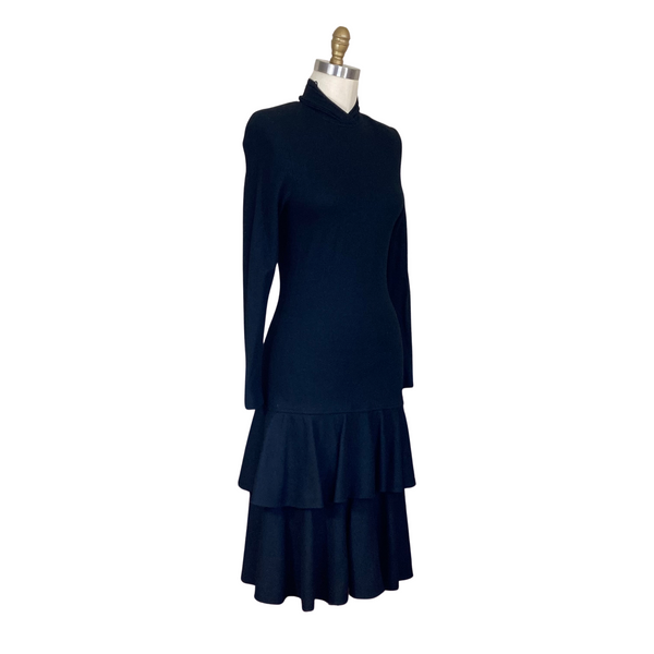 1960s BLACK WOOL TIERED DRESS {WAIST 28 INCHES WOUNDED BIRD}