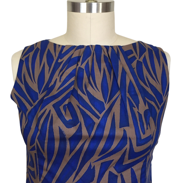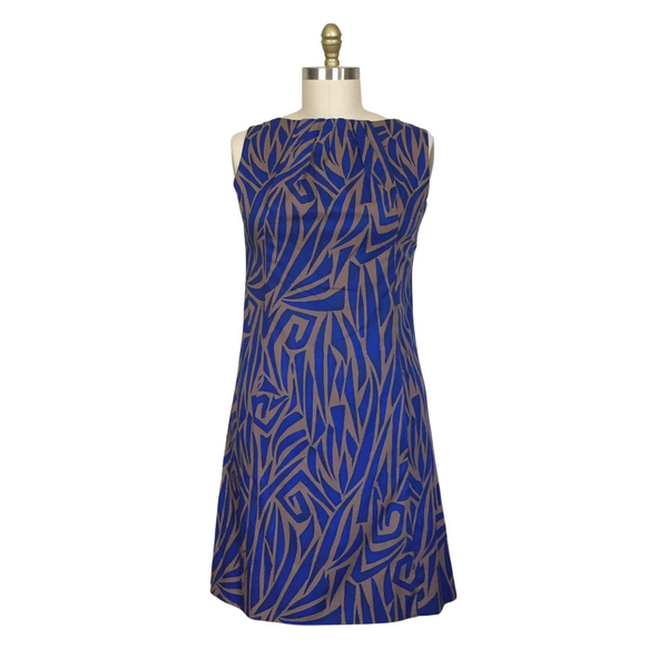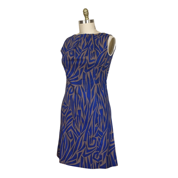 1960s COBALT & TAUPE PRINT MOD DRESS {WAIST 36 INCHES}