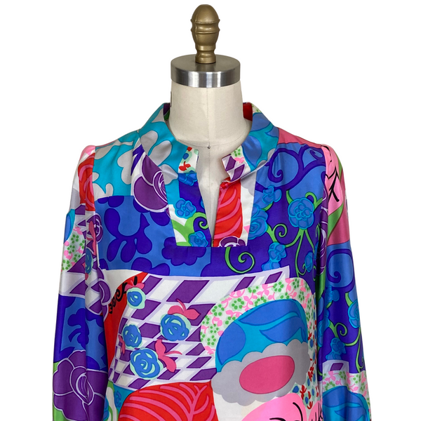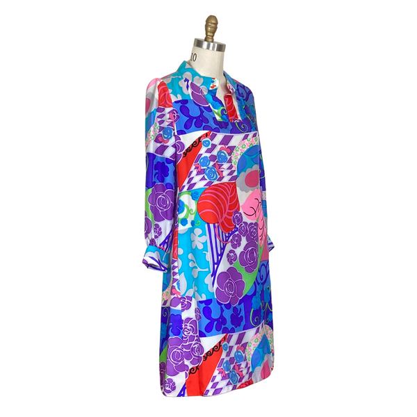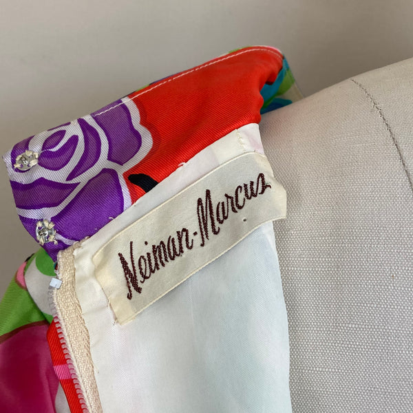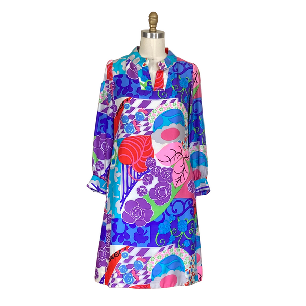 A LIVELY 1960s NEIMAN MARCUS NOVELTY PRINT MOD DRESS. THE PRINT REMINDS ME OF SPRING.