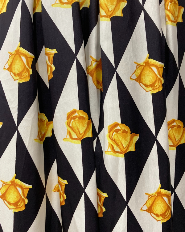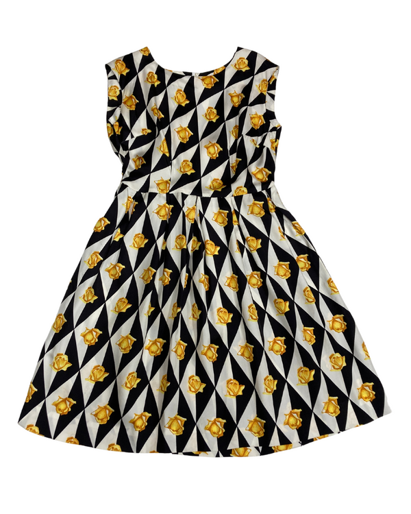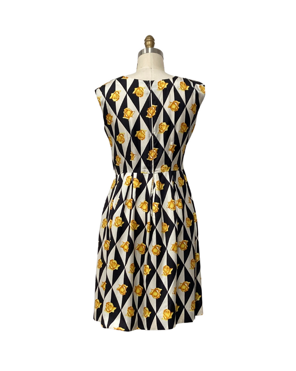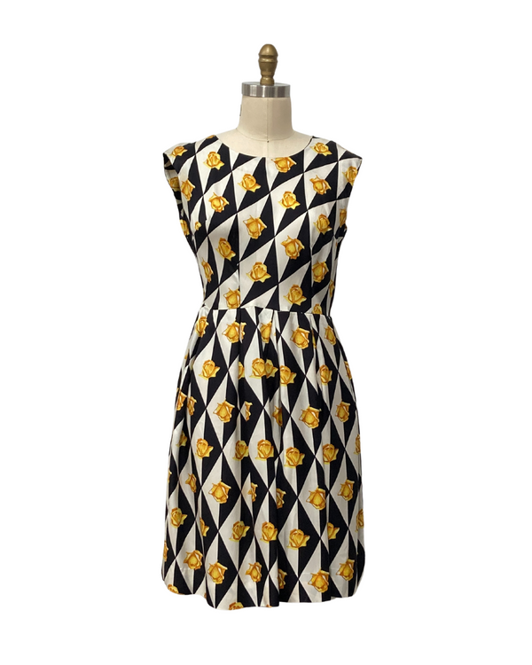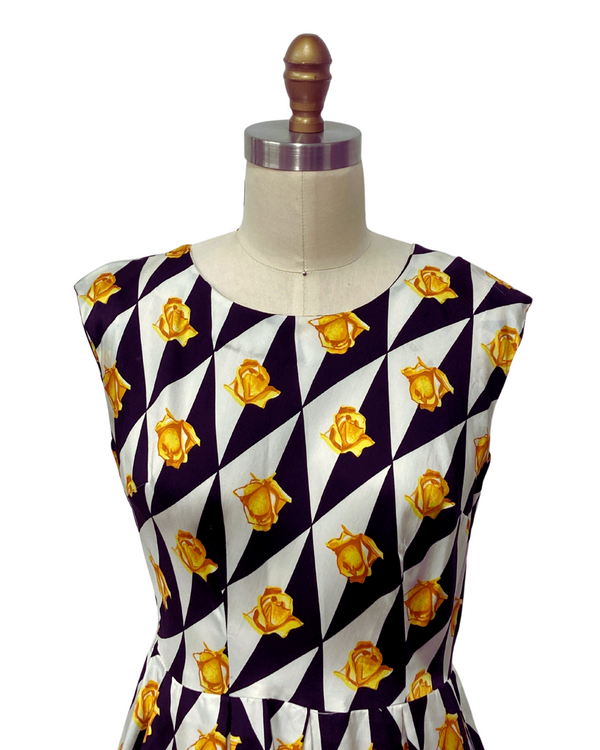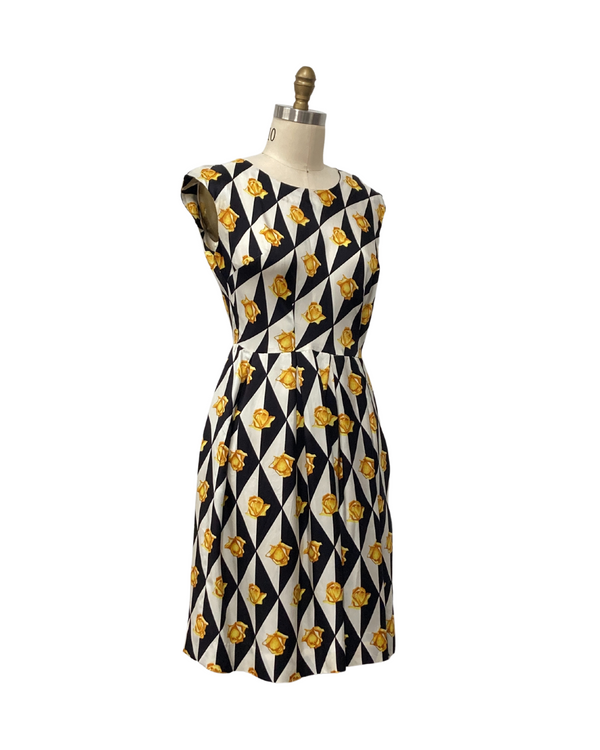 1960s YELLOW ROSEBUD GEOMETRIC DRESS {WAIST 30 INCHES}
