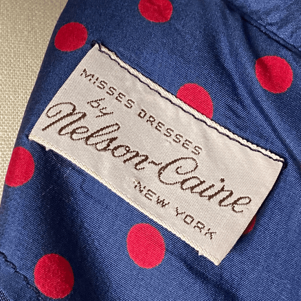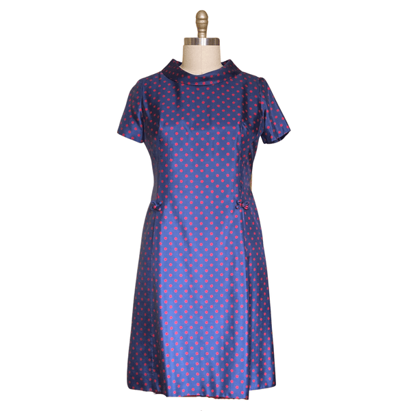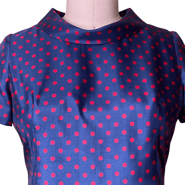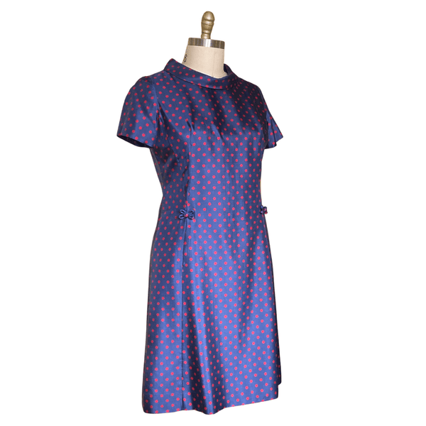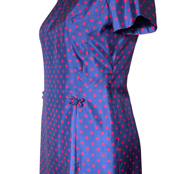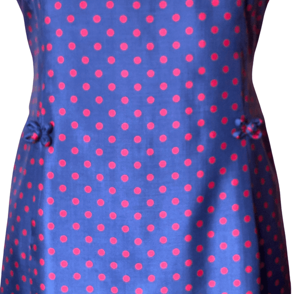 1960s BLUE RED POLKA DOTS DRESS (WAIST 34 INCHES}