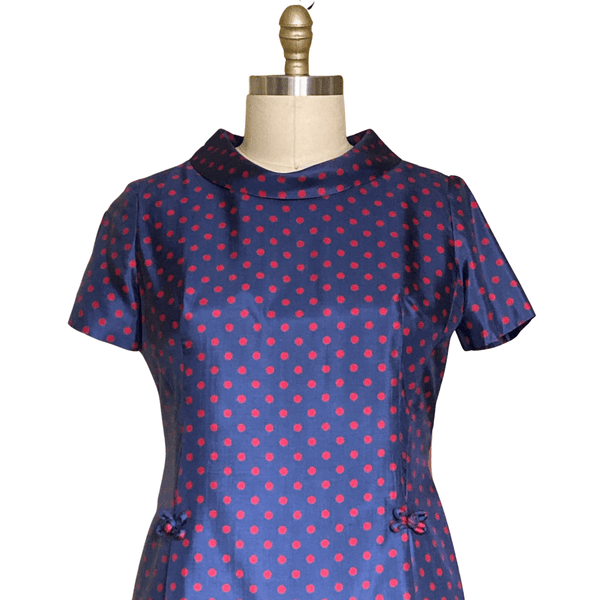 CUTE 1960s BLUE WITH RED POLKA DOT DRESS. CLASSIC VINTAGE!