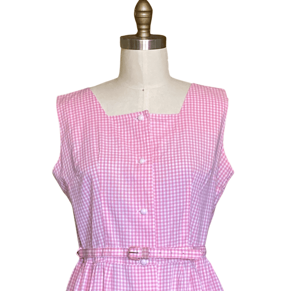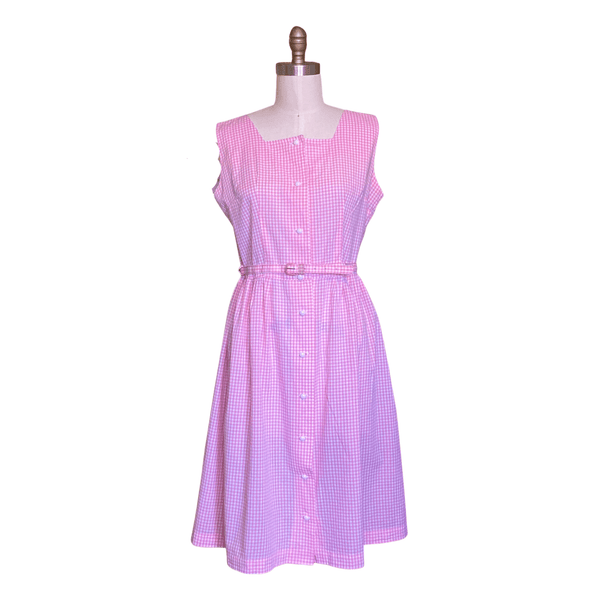 VINTAGE 1960s PINK GINGHAM COTTON DAY DRESS with MATCHING BELT | 1960s GINGHAM COTTON DAY DRESS