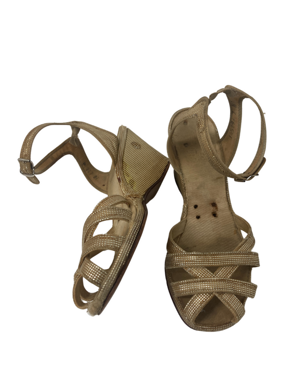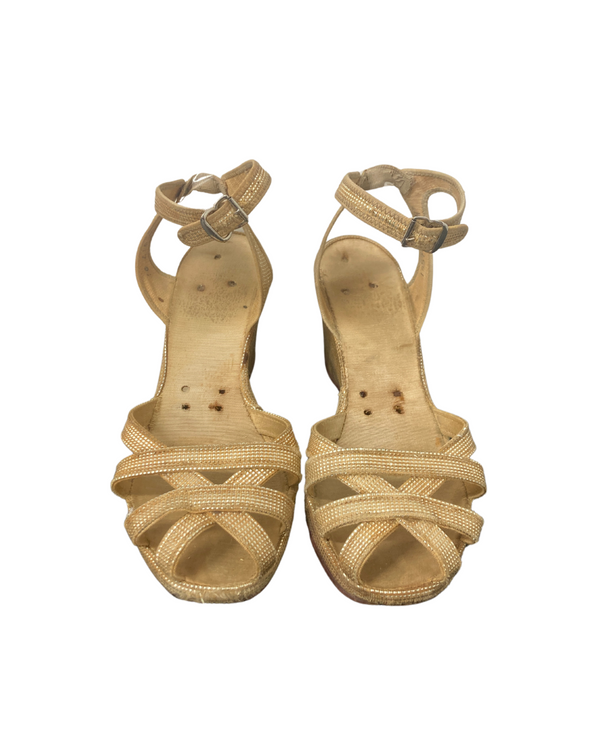 1930s/1940s GOLD METALLIC WEDGE SANDALS