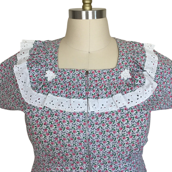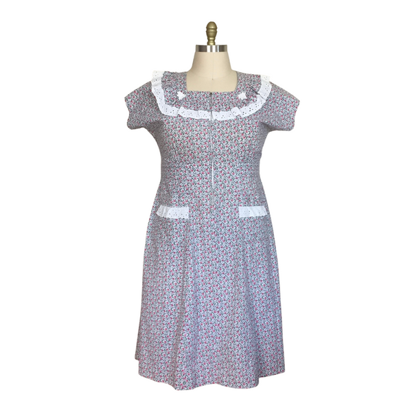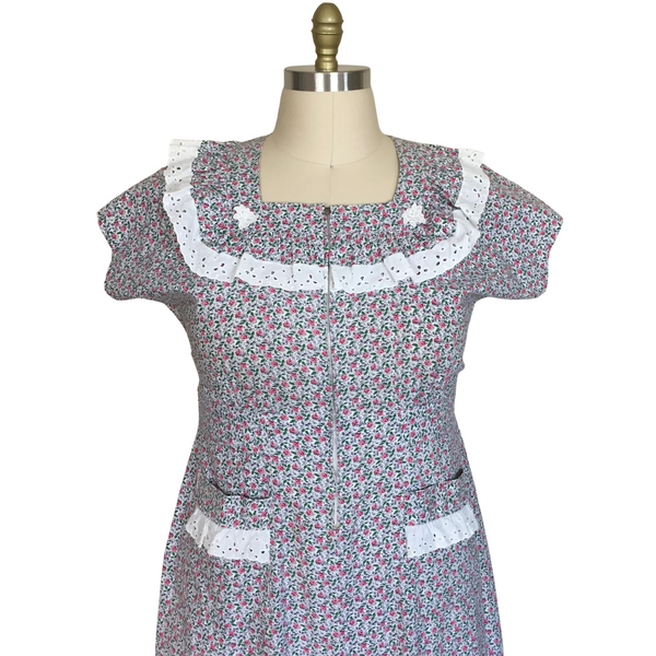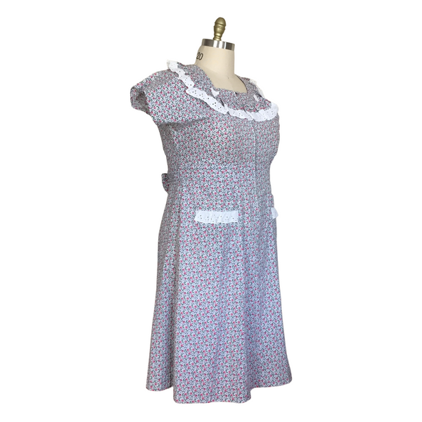 1940s PLUS SIZE DAINTY FLORAL PRINT DRESS {WAIST 40 INCHES}