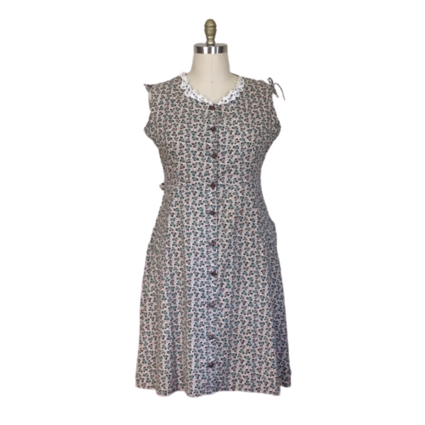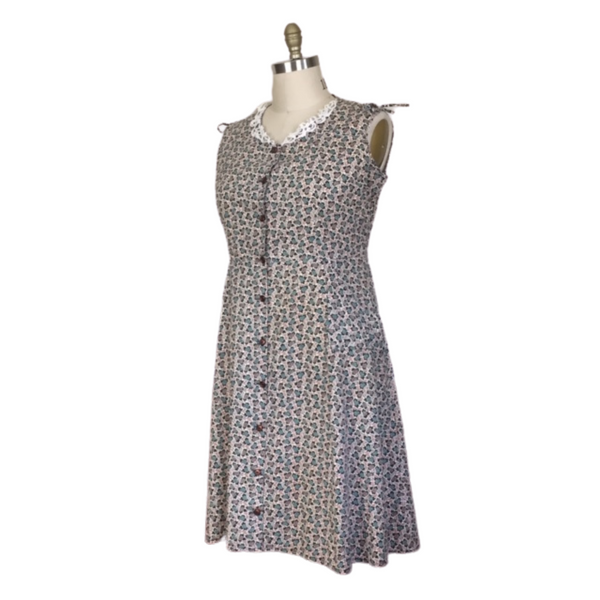 LACE COLLAR & SHOULDER TIES ARE THE DETAILS OF THIS 1940S FLORAL DRESS. GREAT FOR SPRING TIME STROLLS.