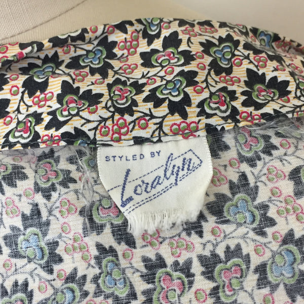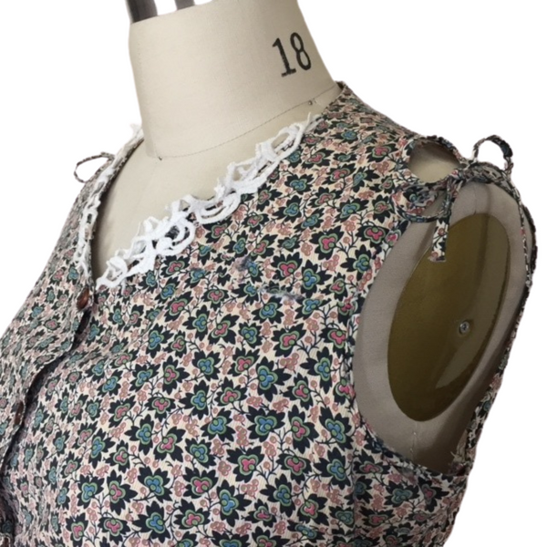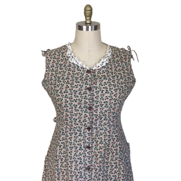 1940s PLUS SIZE SHOULDER TIE FLORAL DRESS {WAIST 38 INCHES}
