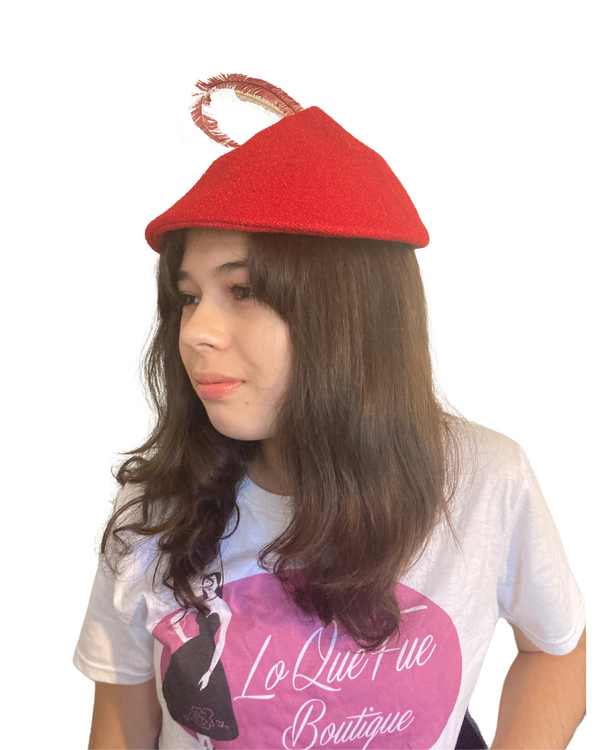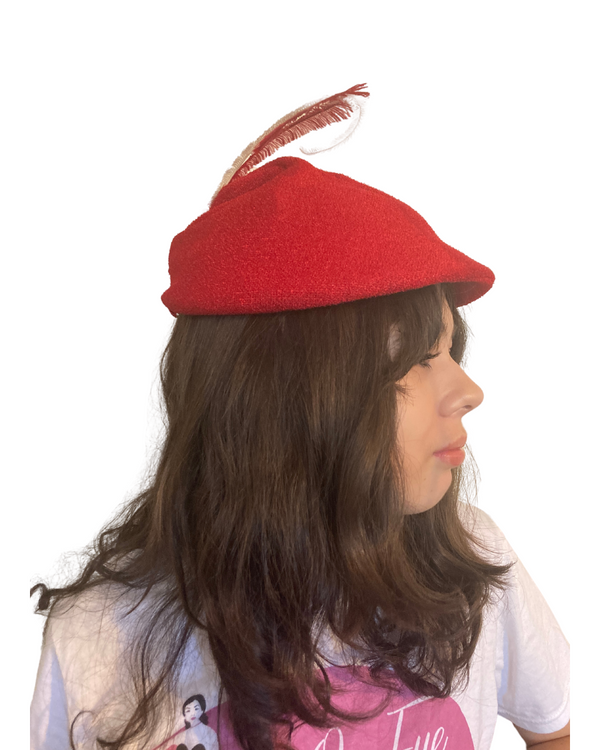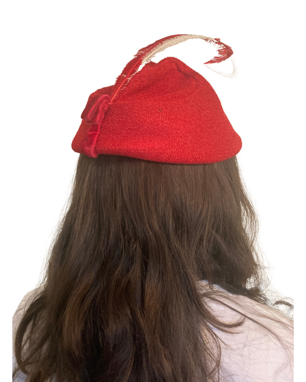 VINTAGE RED & WHITE FEATHERS HAT | 1940s VINTAGE RED WOMEN'S HAT