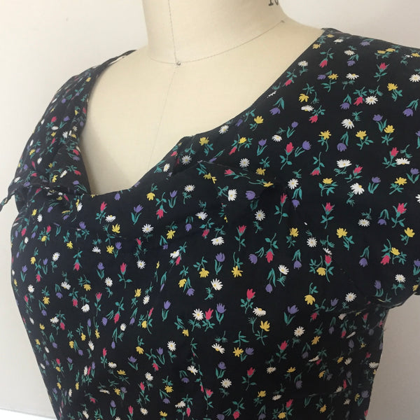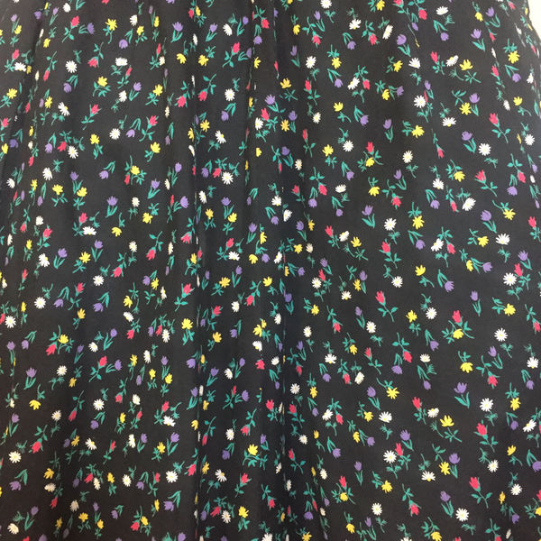 1950s BLACK FLORAL FULL SKIRT DRESS {WAIST 32 INCHES)