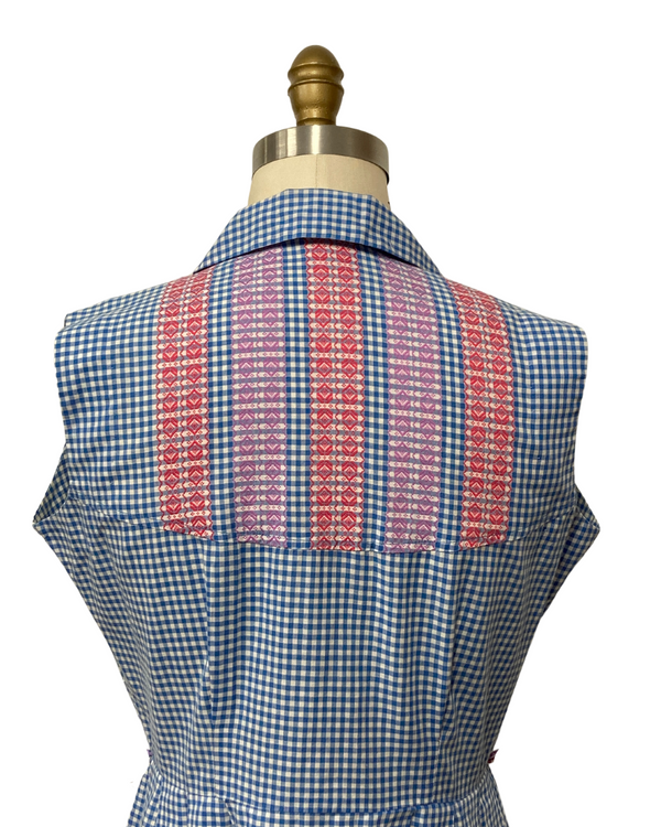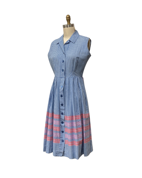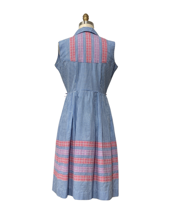 1950s GINGHAM MULTI COLOR DETAIL DRESS {WAIST 31 INCHES}