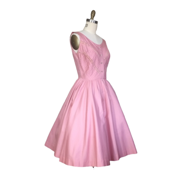 1950s LIGHT PINK FULL SKIRT DRESS {WAIST 28 INCHES}