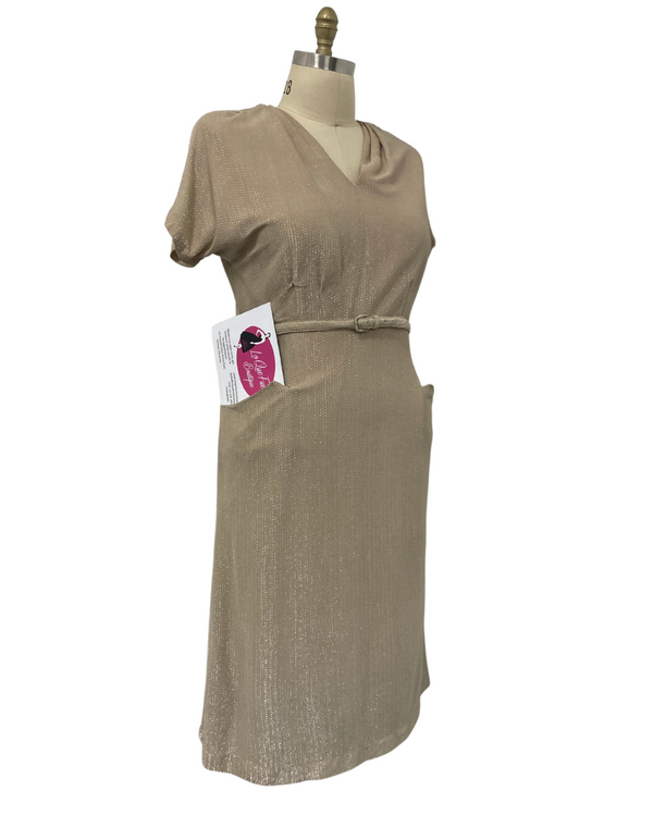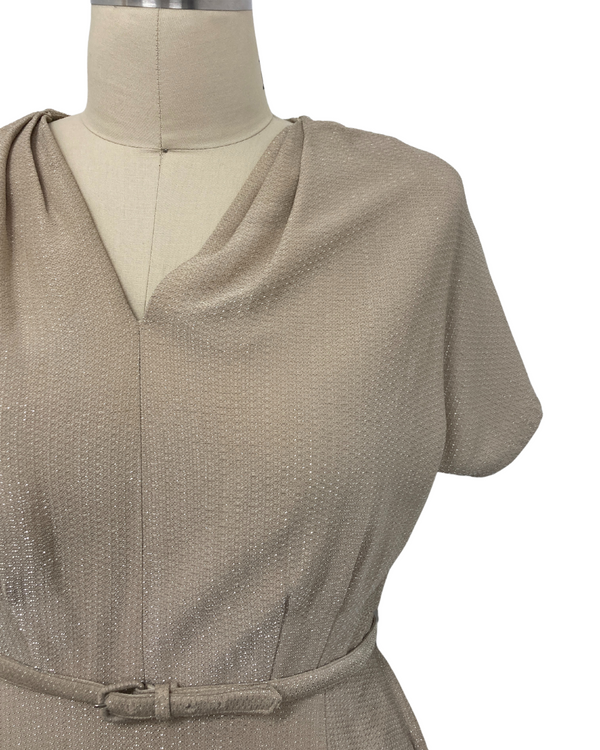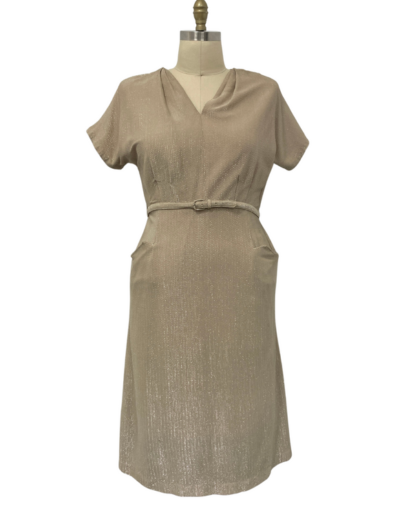 1950s PLUS SIZE BEIGE & SILVER LUREX DRESS {WAIST 37 INCHES}