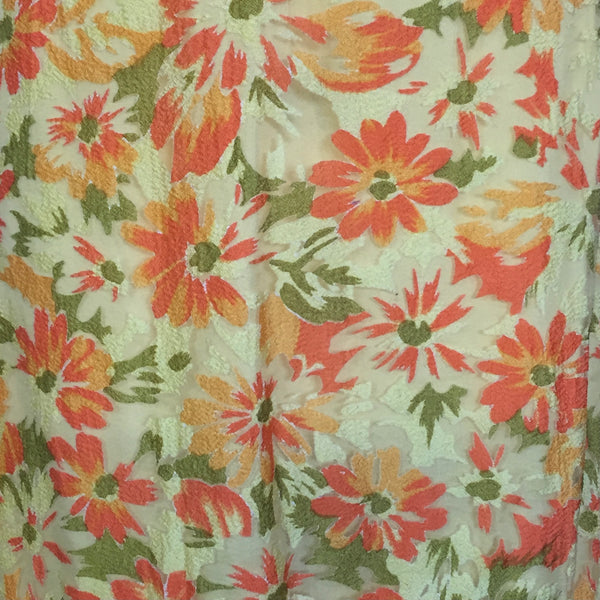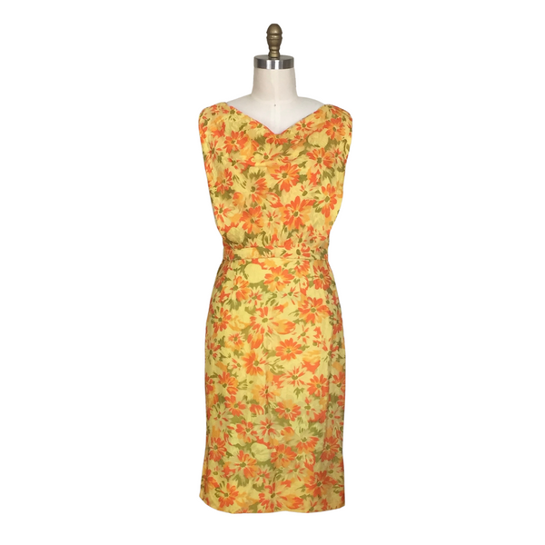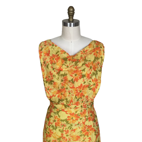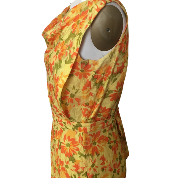 1950s YELLOW & ORANGE FLORAL DRESS {WAIST 30 INCHES}