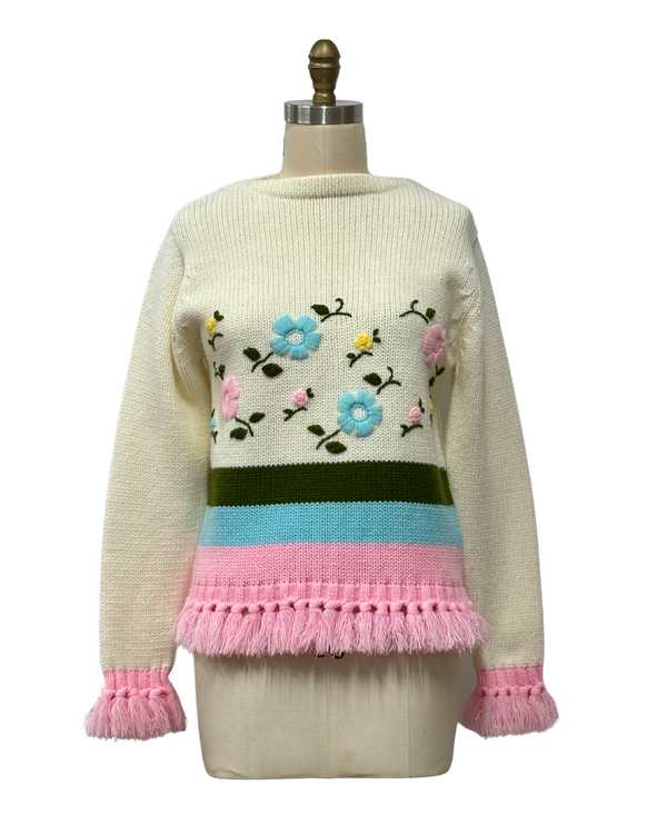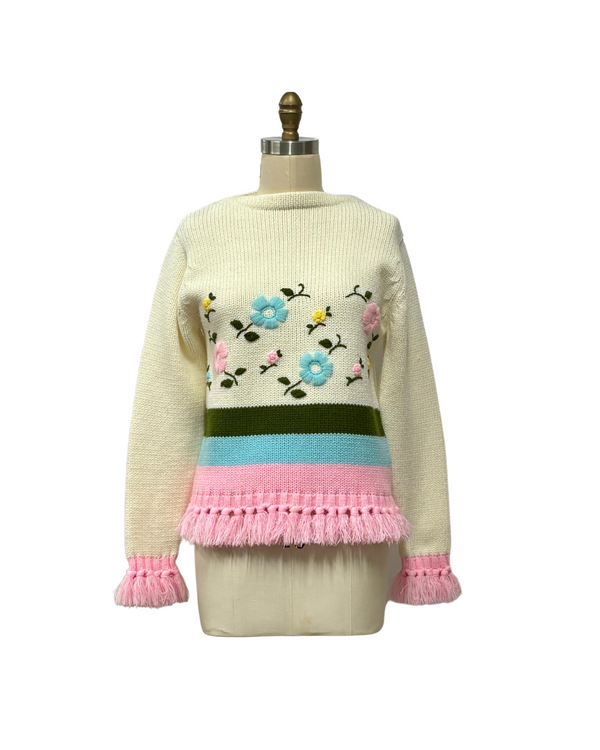 VINTAGE 1960s FLOWER SWEATER | 1960s VINTAGE SWEATER