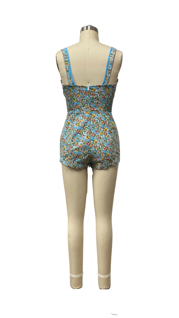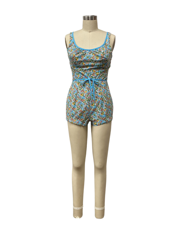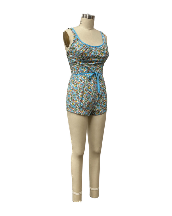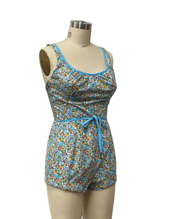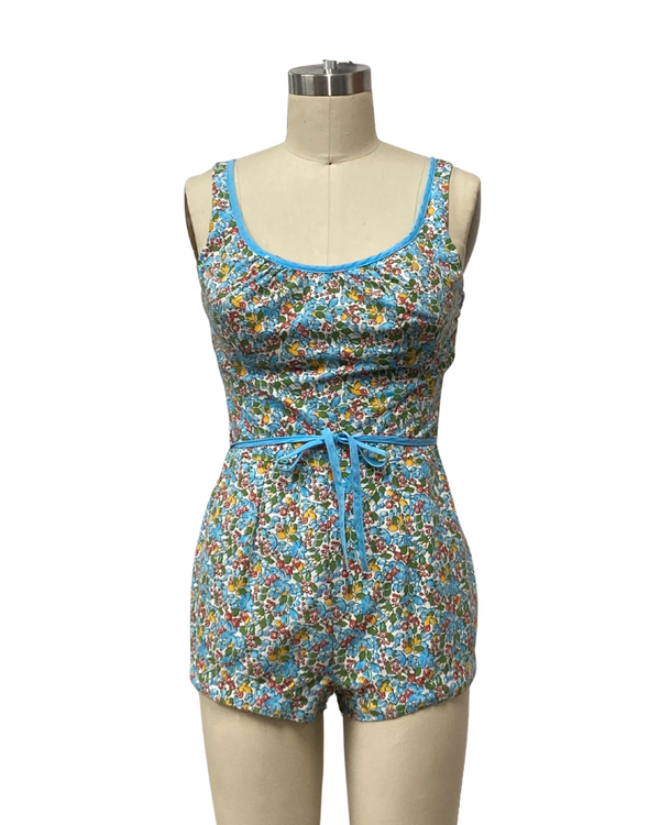 VINTAGE 1960s FLORAL PLAYSUIT | 1960s VINTAGE LIGHT BLUE SWIMWEAR