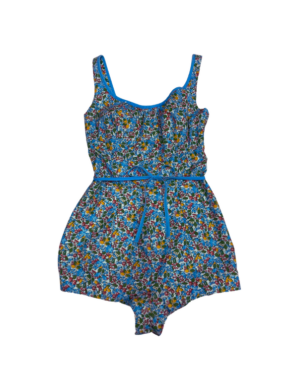 1960s LIGHT BLUE FLORAL PLAYSUIT {WAIST 28 INCHES}