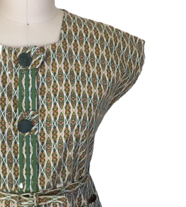 SWEET 1960s PLUS SIZE MINI YELLOW FLORAL DRESS WITH MATCHING BELT. A VERY SPRING LOOK.