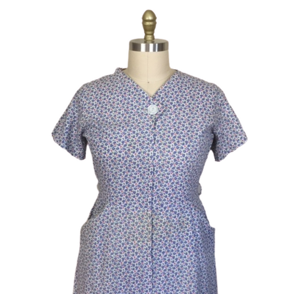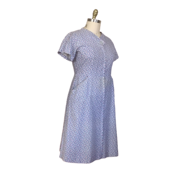 CHARMING 1960s PINK & BLUE FLORAL DRESS. PERFECT FOR DAILY VINTAGE FASHION WEARING.