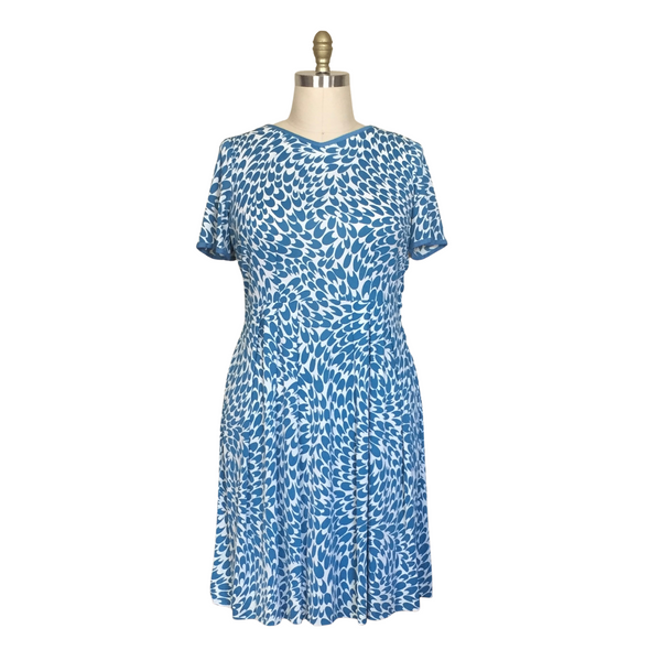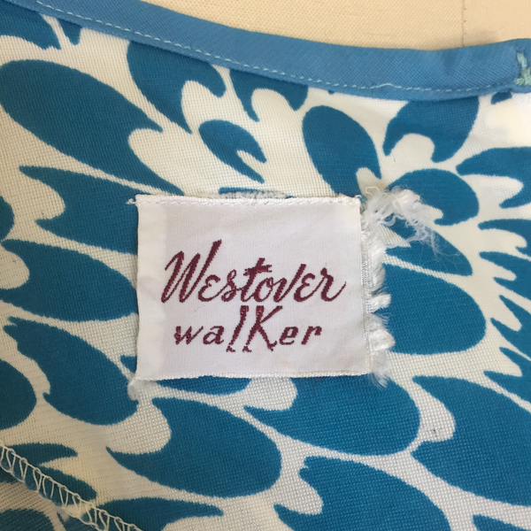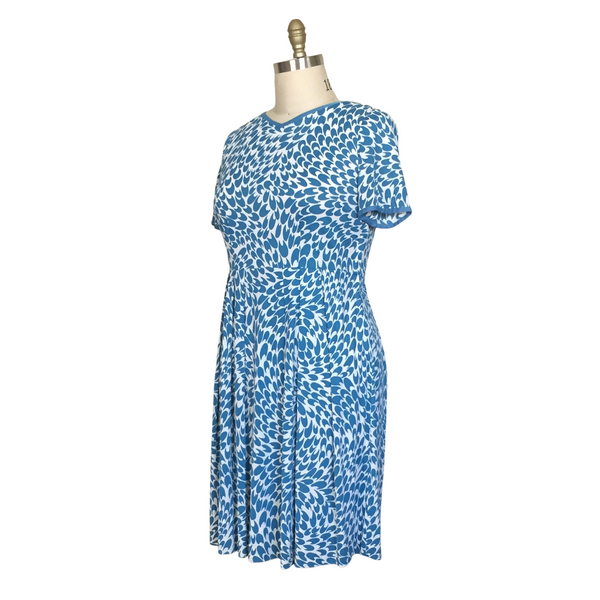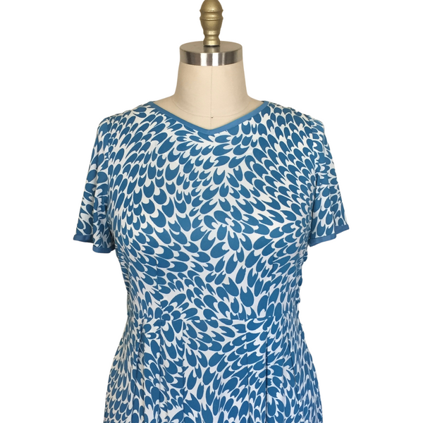 SOFT & SMOOTH 1960s PLUS SIZE TURQUOISE TIDAL WAVE PRINT DRESS. MADE OF JERSEY.