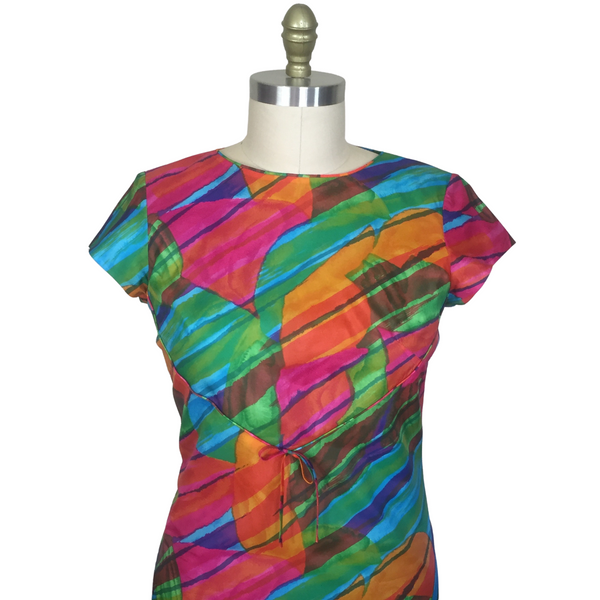 1960s TROPICAL COLORS HAWAIIAN DRESS (WAIST 35 INCHES}