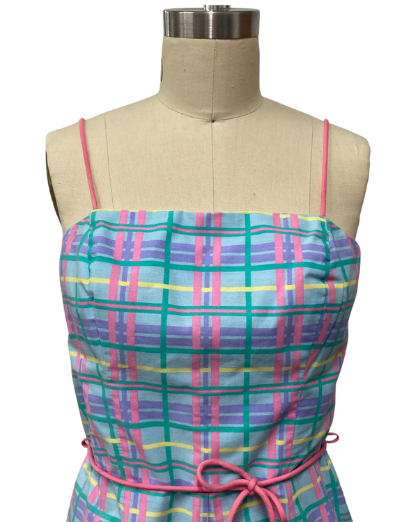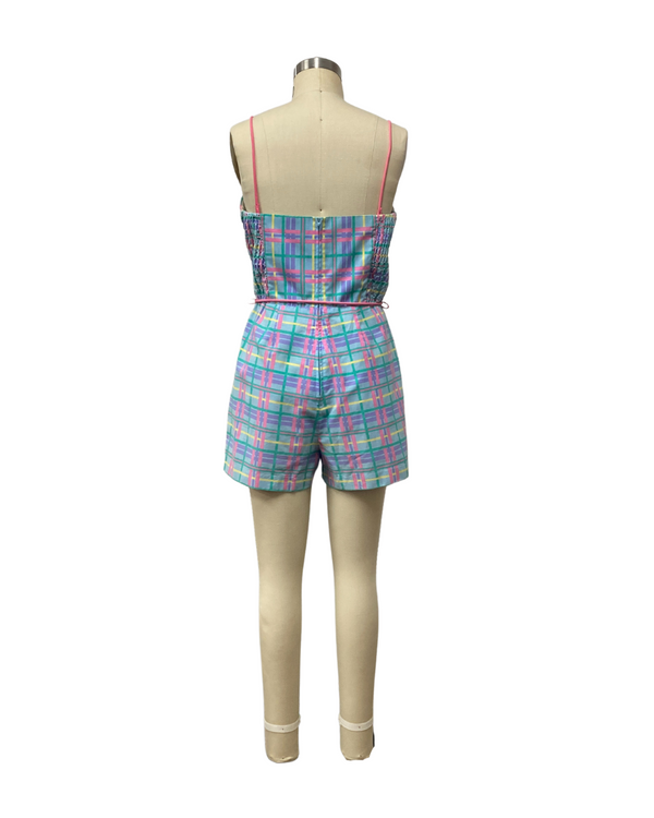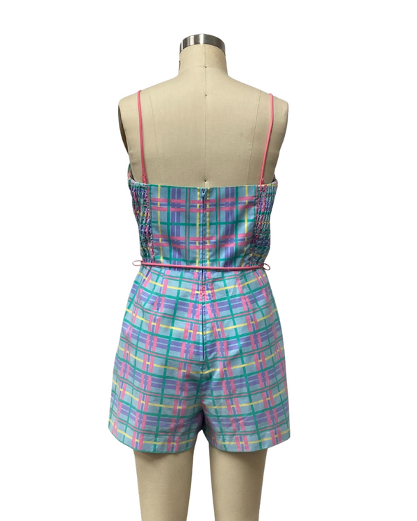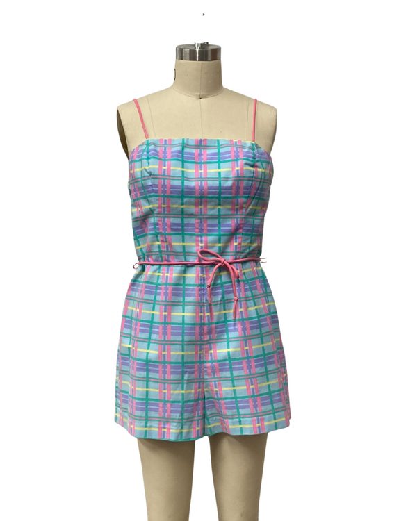 1970s LIGHT BLUE & PINK PRINT PLAYSUIT {WAIST 32 INCHES}