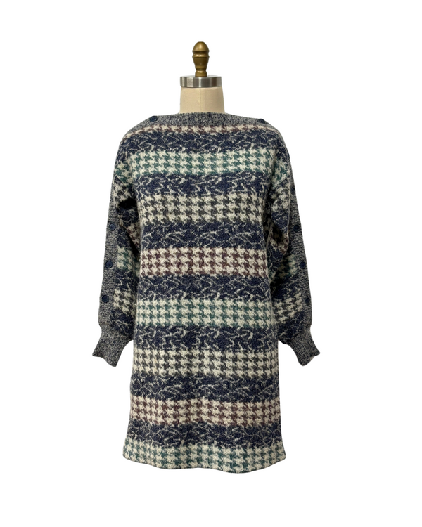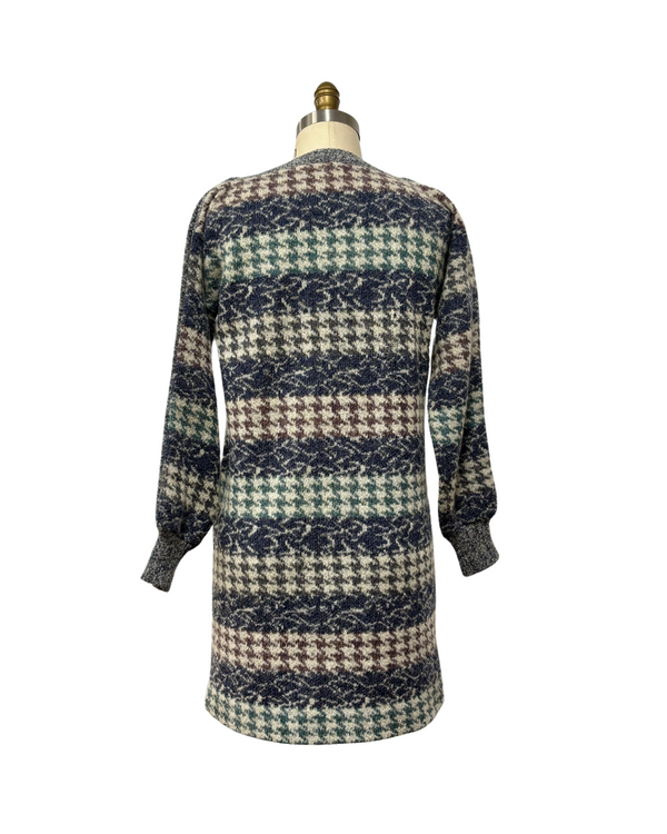 VINTAGE 1970s GRAY PRINT DRESS | VINTAGE 1970s DESIGNER GRAY HOUNDSTOOTH DRESS