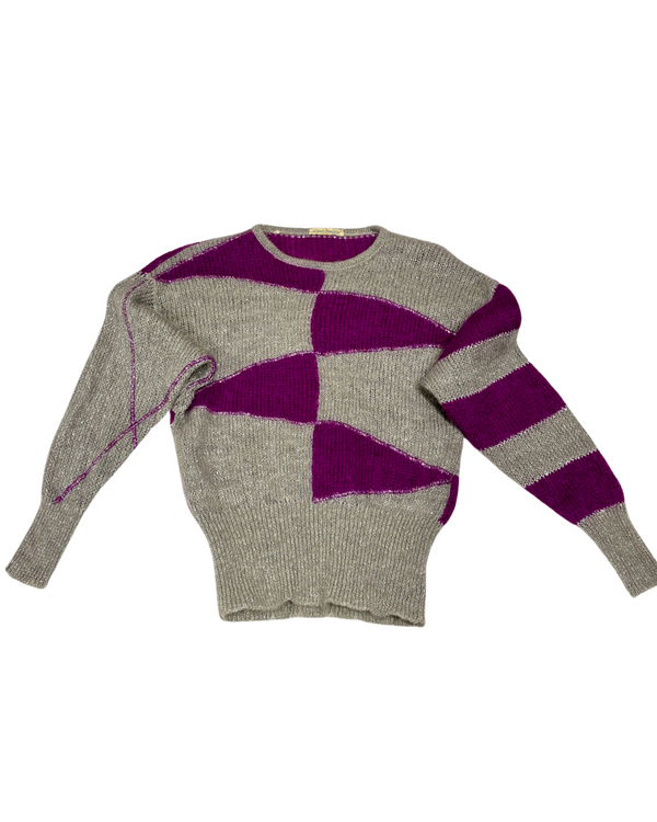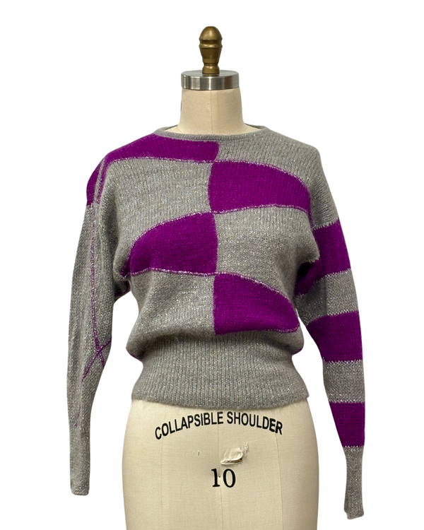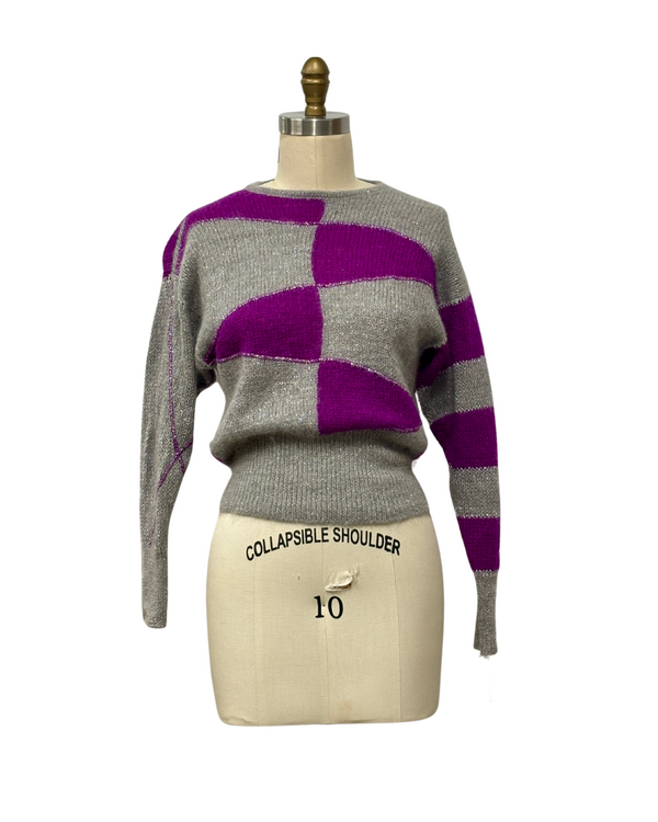 VINTAGE 1980s PURPLE & GRAY SWEATER | 1980s GARY LUREX SWEATER