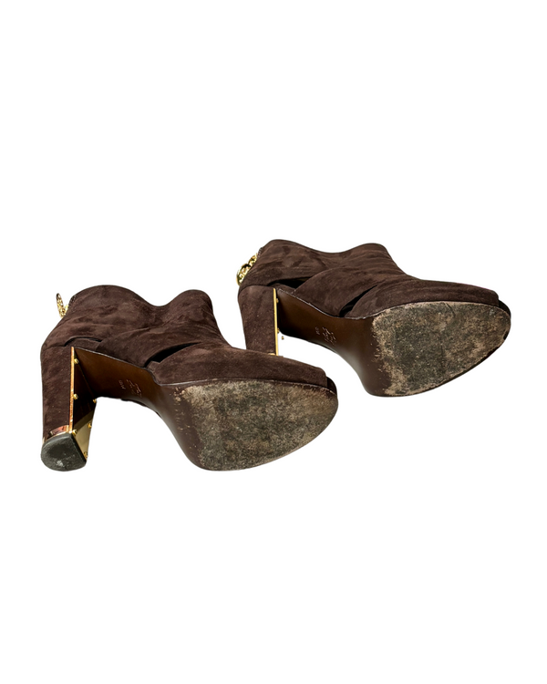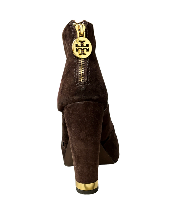 TORY BURCH BROWN SUEDE CUTOUT HEELS {SIZE 8}