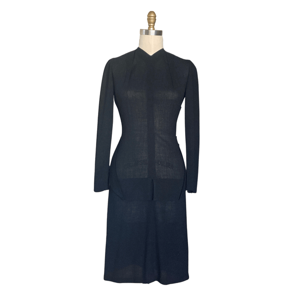 1940s BLACK PEPLUM DRESS {WAIST 28 INCHES}