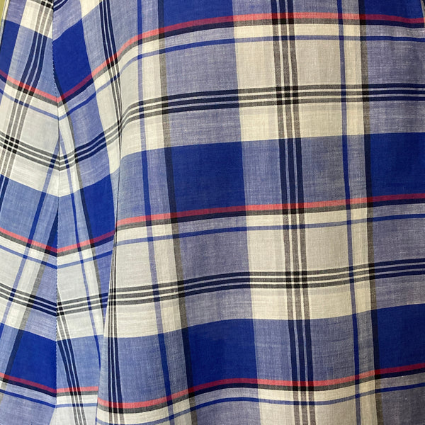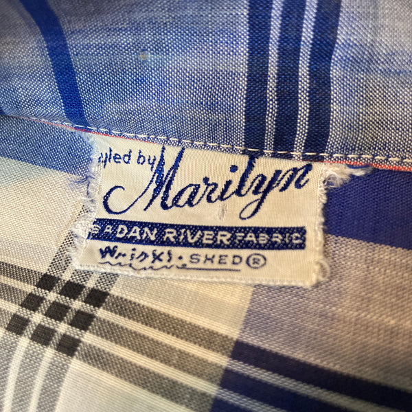 1940s BLUE PLAID COTTON DAY DRESS {WAIST 33 INCHES}