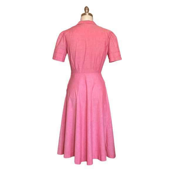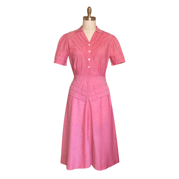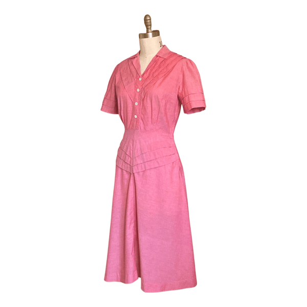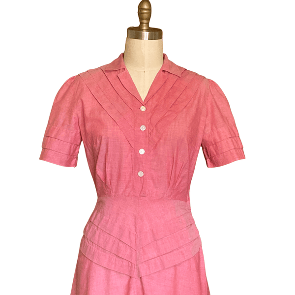 1940s RED CHAMBRAY PANEL DRESS {WAIST 28 INCHES}