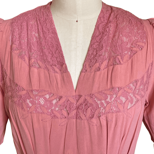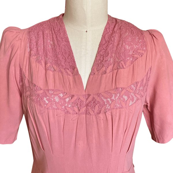 1940s SALMON LACE DAY DRESS {WAIST 34 INCHES}