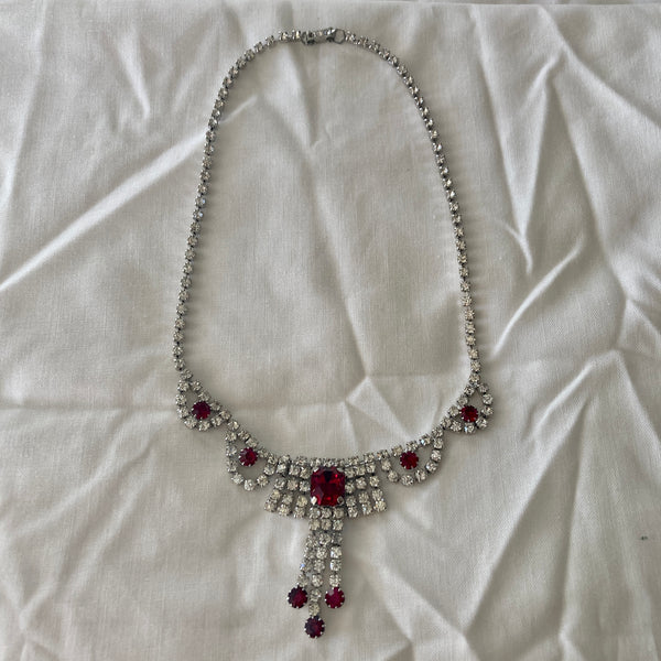 1950s RED & CLEAR RHINESTONE NECKLACE