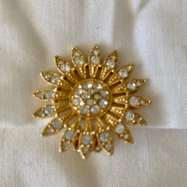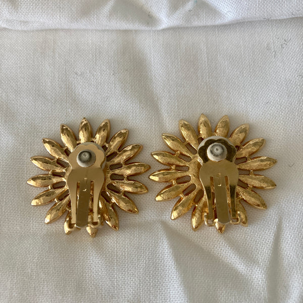 VINTAGE 1960s RHINESTONE GOLD TONE CIRCLE EARRINGS | 1960s VINTAGE GOLD TONE CLIP ON EARRINGS | 1960s COSTUME EARRINGS