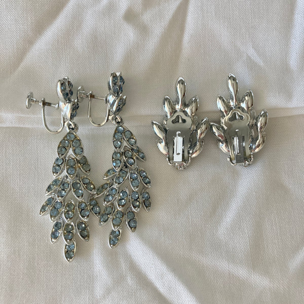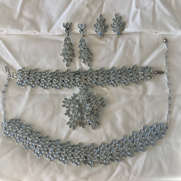 1960s ICE BLUE SILVER TONE COMPLETE JEWELRY SET