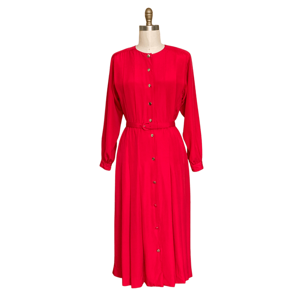 1980s RED SILK PLEATED DRESS {WAIST 28 INCHES}
