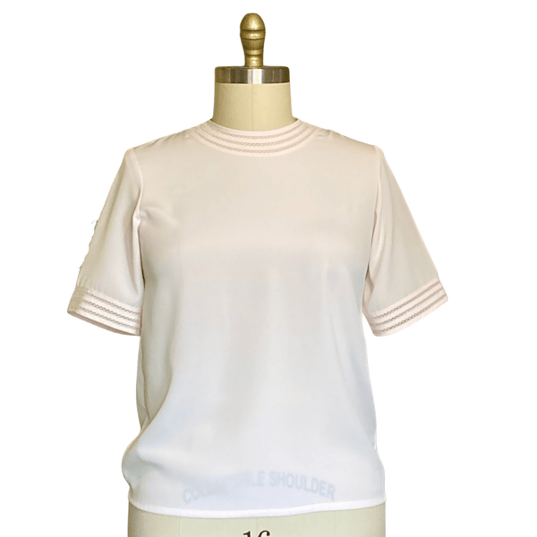 VINTAGE 1980s SOFT PINK COLLAR & SLEEVE CUTOUT BLOUSE | 1980S VINTAGE LIGHT PINK CUTOUT DETAIL BLOUSE | VINTAGE 1980S BLOUSE