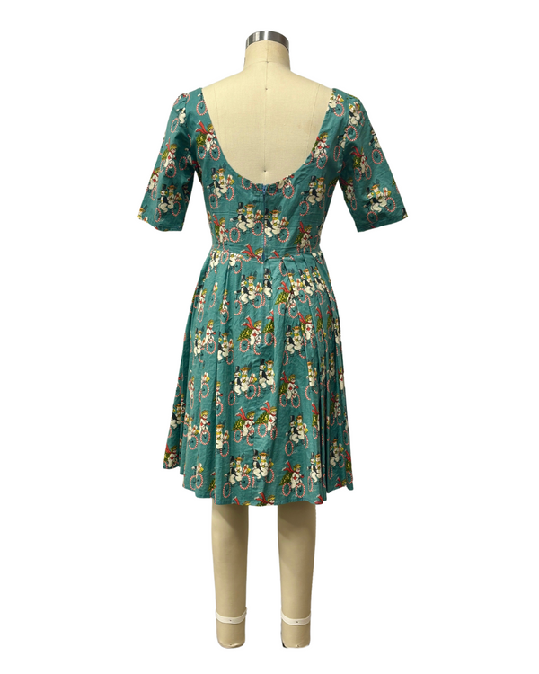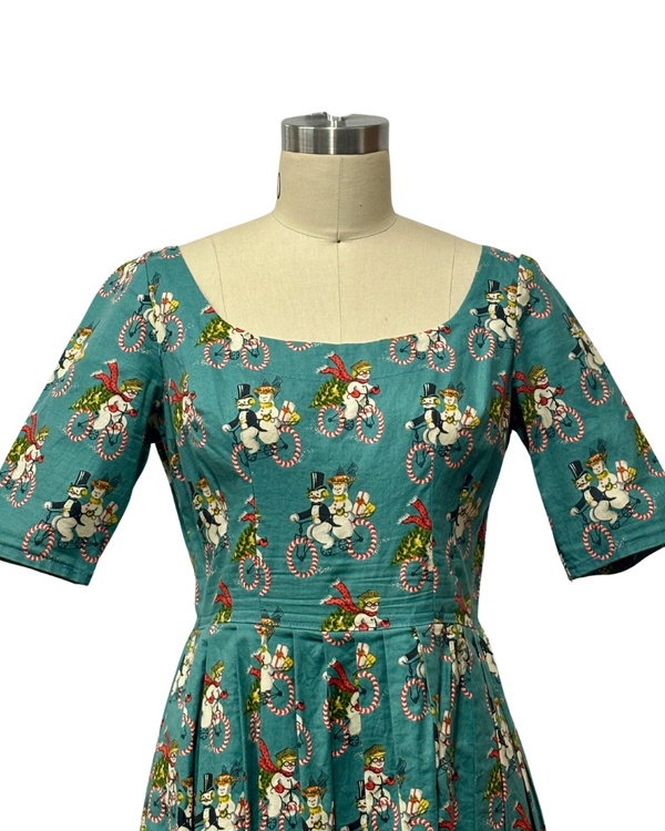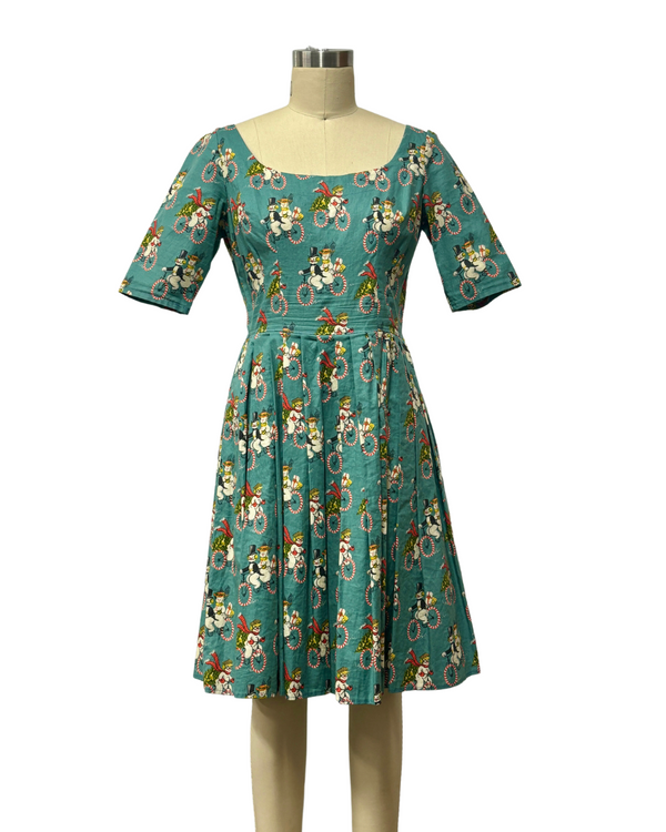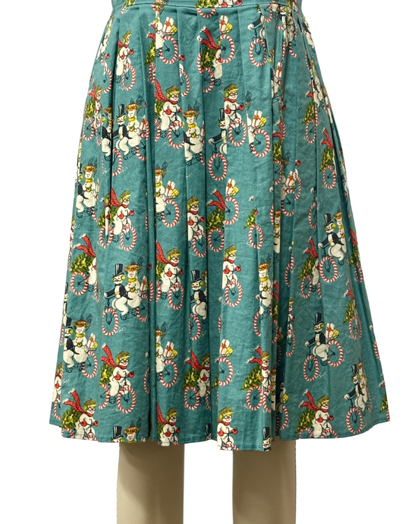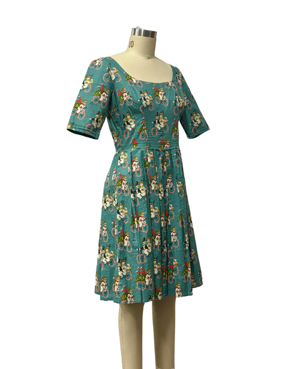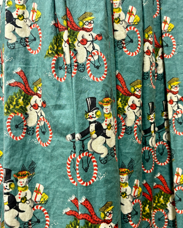VINTAGE SNOW MAN & SNOW WOMAN PRINT DRESS {WAIST 30 INCHES}