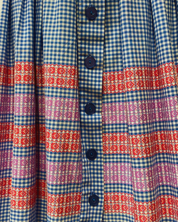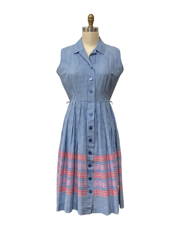 1950s GINGHAM MULTI COLOR DETAIL DRESS {WAIST 31 INCHES}