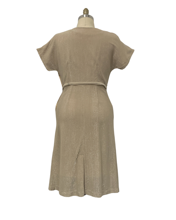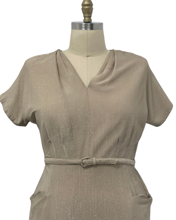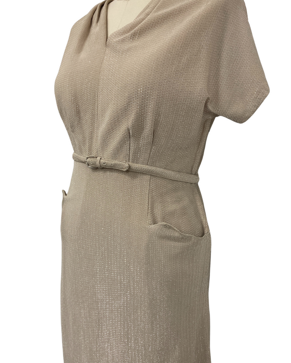 1950s PLUS SIZE BEIGE & SILVER LUREX DRESS {WAIST 37 INCHES}