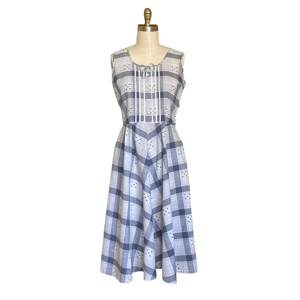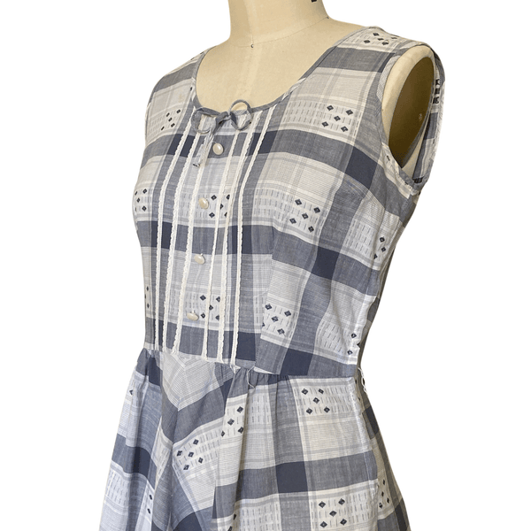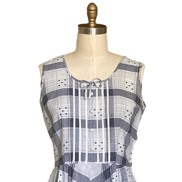 VINTAGE 1950s GRAY PLAID COTTON DAY DRESS | 1950s VINTAGE GRAY DRESS | VINTAGE 1950s COTTON DAY DRESS