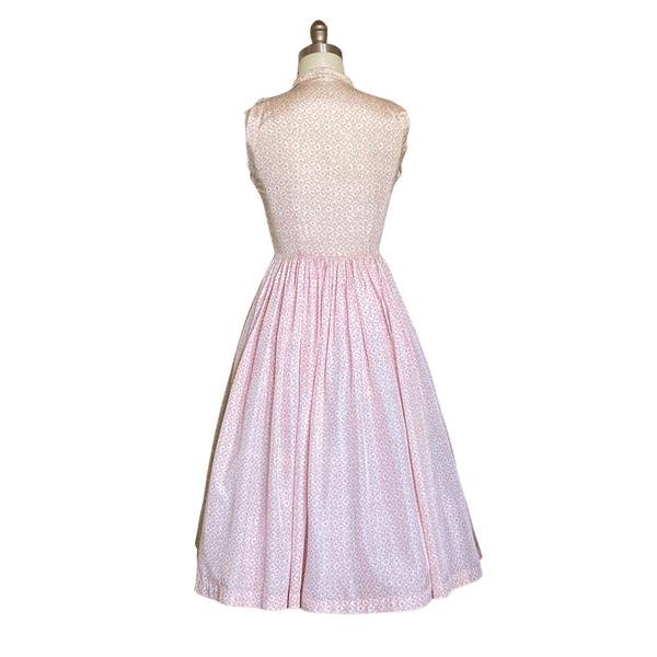 1950s PINK MINI FLORAL PRINT FULL SKIRT DRESS {WAIST 29 INCHES}