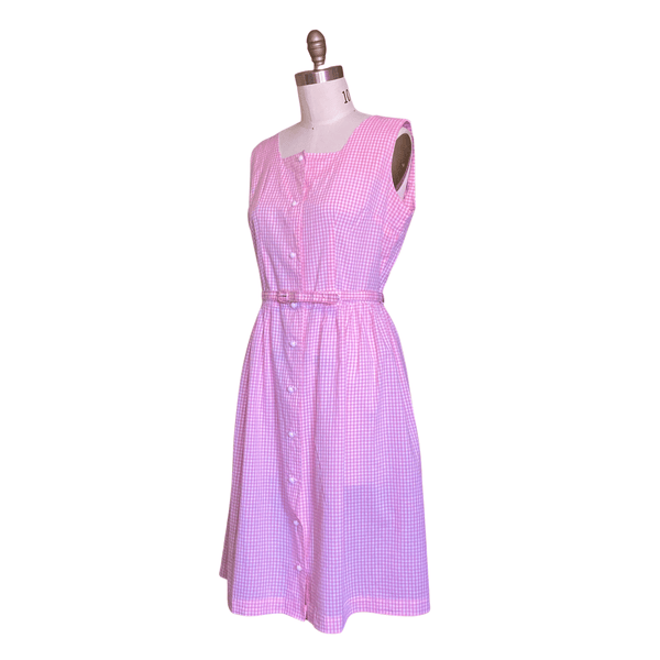 VINTAGE 1960s PINK GINGHAM COTTON DAY DRESS with MATCHING BELT | 1960s GINGHAM COTTON DAY DRESS