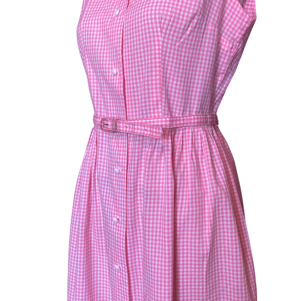 1960s PINK GINGHAM DRESS {WAIST 32 INCHES}