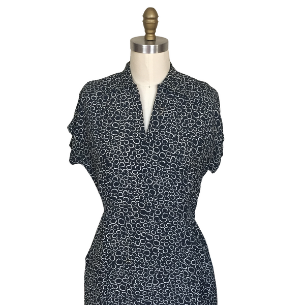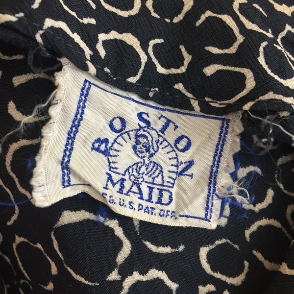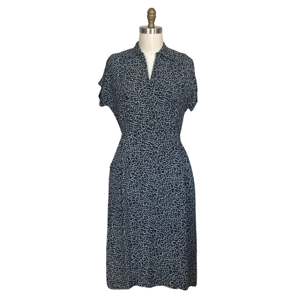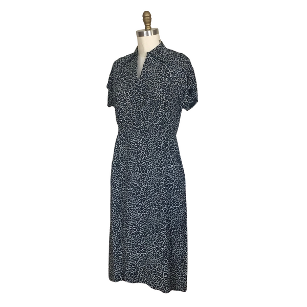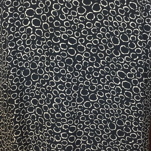 1940s BLACK & CREAM PRINT DRESS {WAIST 32 INCHES}