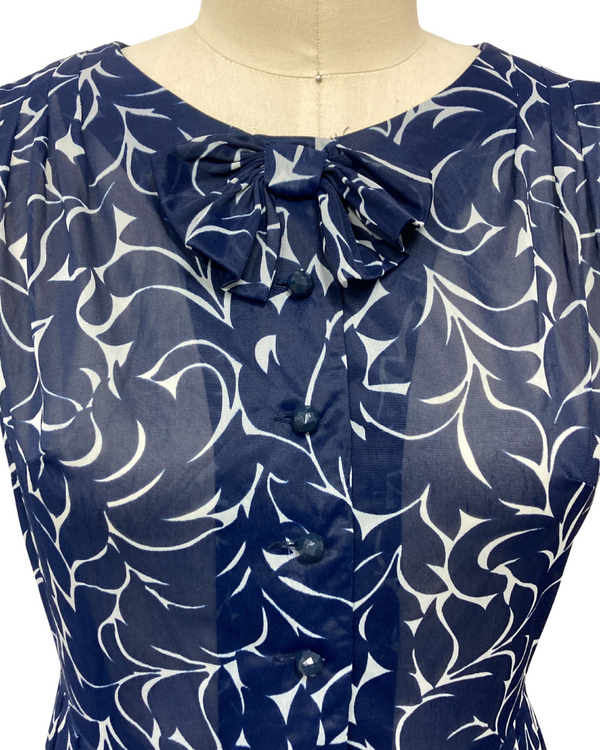 1950s SHEER NAVY LEAF DRESS {WAIST 30 INCHES}