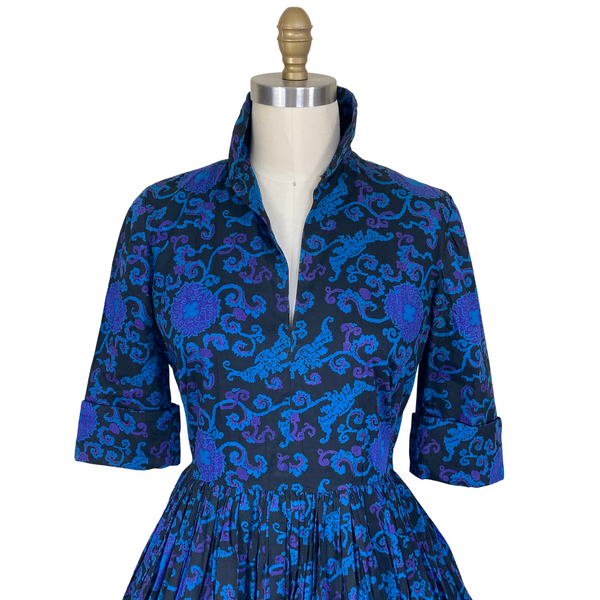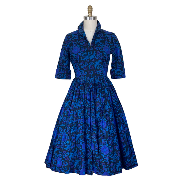 1950s TURQUOISE & PURPLE PAISLEY FULL SKIRT DRESS {WAIST 28 INCHES}