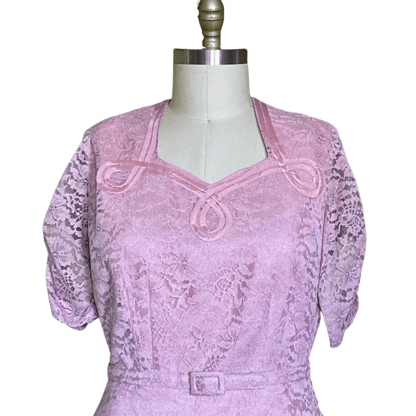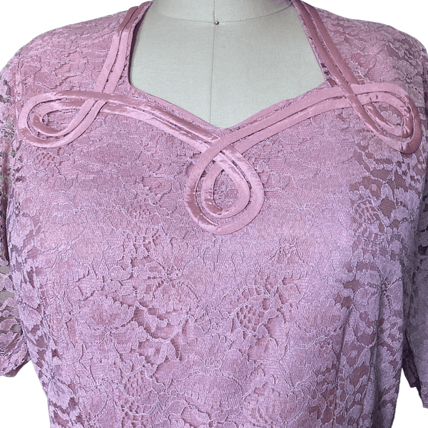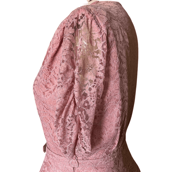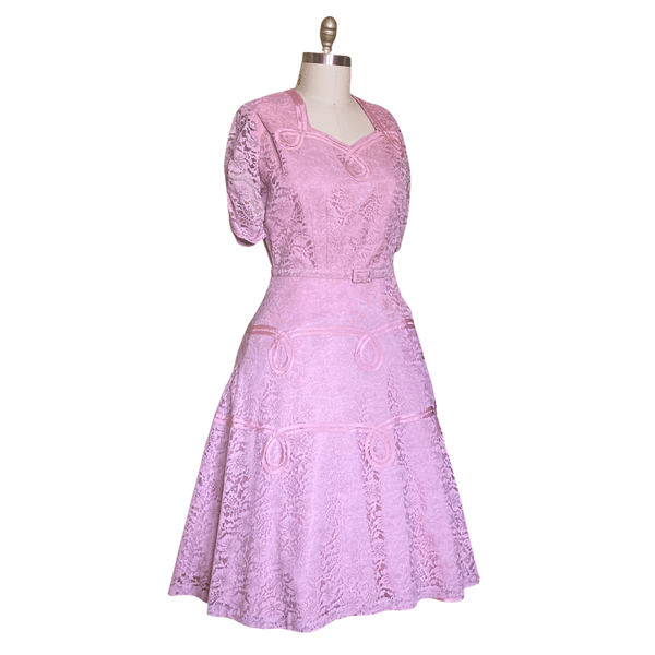 1950s PINK LACE FULL SKIRT DRESS (WAIST 32 INCHES}
