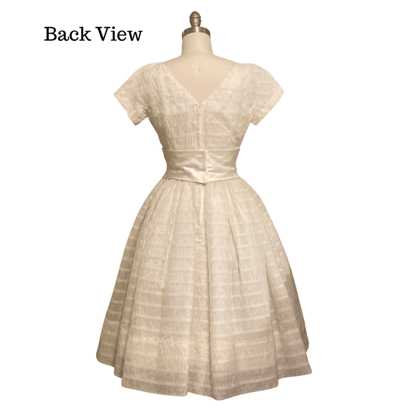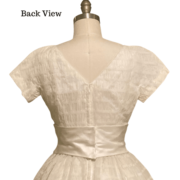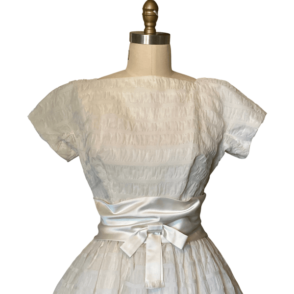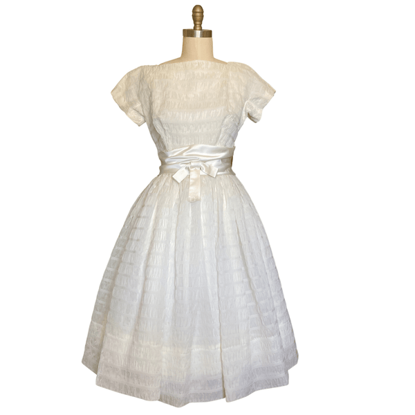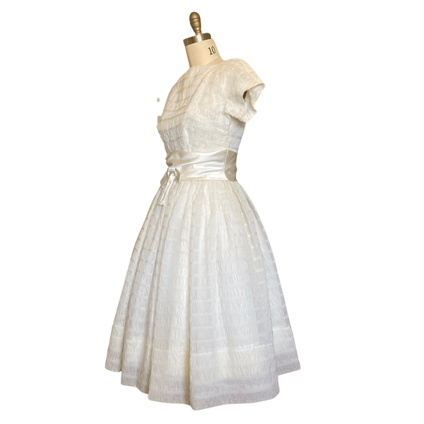 1950s CHANDELIER WHITE TEXTURED DRESS {WAIST 28 INCHES}