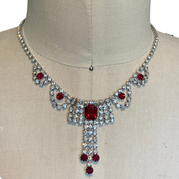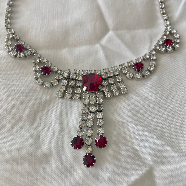 1950s RED & CLEAR RHINESTONE NECKLACE